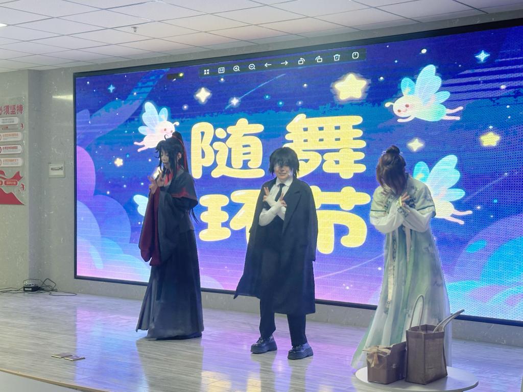 本次活动设置了动漫作品展、Cosplay表演、传统文化知识竞赛等多个环节,为同学们提供了一个展示才华、交流兴趣的舞台。动漫作品展:现场展出了学生创作的国漫同人画、原创漫画及动画短片,其中不乏以《西游记》《三国演义》等经典IP为灵感的创新作品,展现了同学们对传统文化的全新诠释。 同学们精心装扮成《斗罗大陆》《狐妖小红娘》《刺客伍六七》等热门国漫角色以及穿着各个朝代汉服带来了一场视觉盛宴,台下掌声不断。