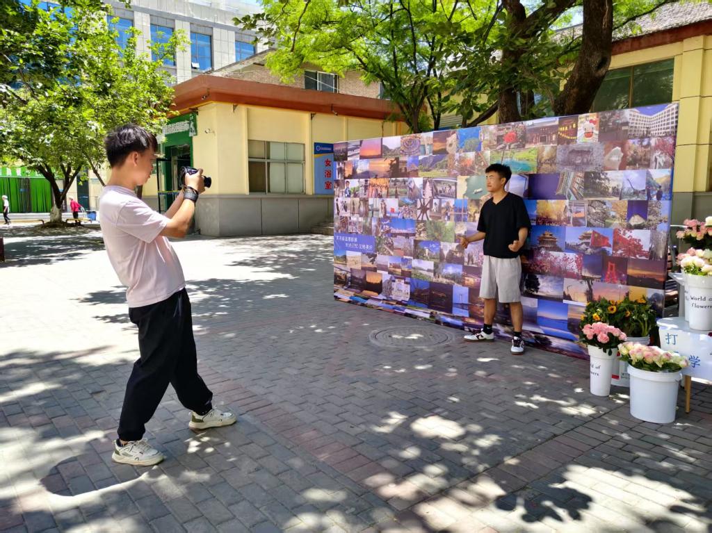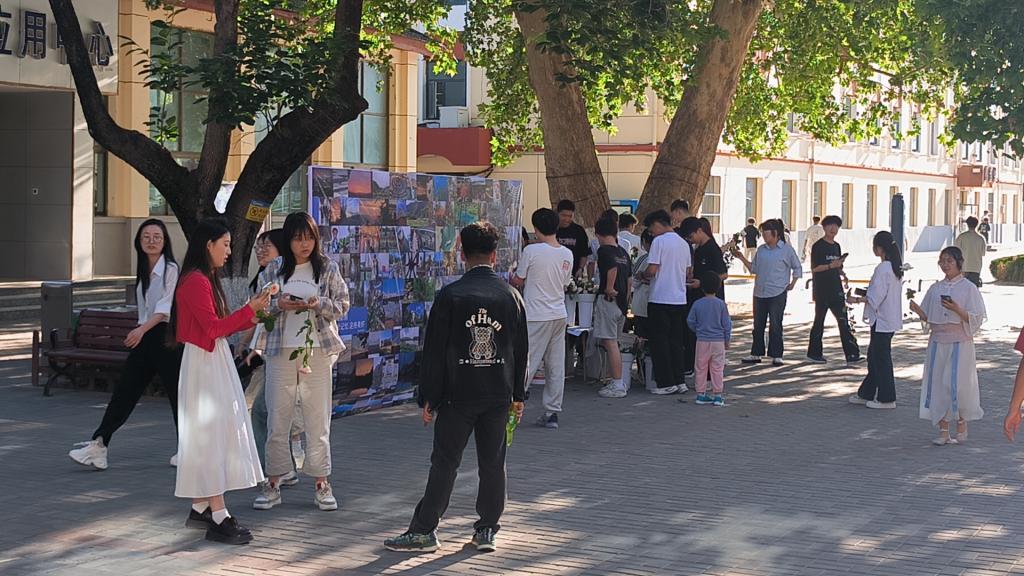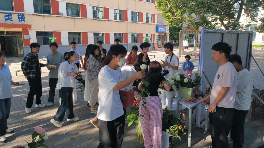 为增强观展的互动性与仪式感,主办方特别准备了鲜花花束,赠予莅临现场的观展师生。鲜花映衬青春面庞,花香与光影艺术交融,为展览增添了温馨雅致的氛围。工作室负责同学在赠花时表示:“本次活动旨在以影像记录美好,更期望通过鲜花传递对生活的热爱与诚挚祝福。”