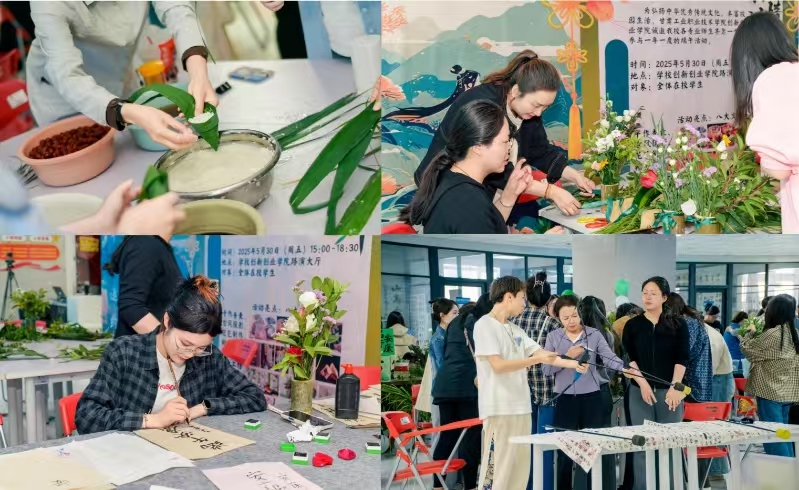 为深入弘扬中华优秀传统文化,丰富校园文化生活,营造浓郁节日氛围,2025年5月30日创新创业学院联合校工会在双创学院路演大厅成功举办“粽香传古韵 匠心承文脉”端午文化体验活动。本次活动面向全体在校师生,旨在通过沉浸式文化体验,让师生们共度端午佳节,感受传统魅力,厚植文化情怀。