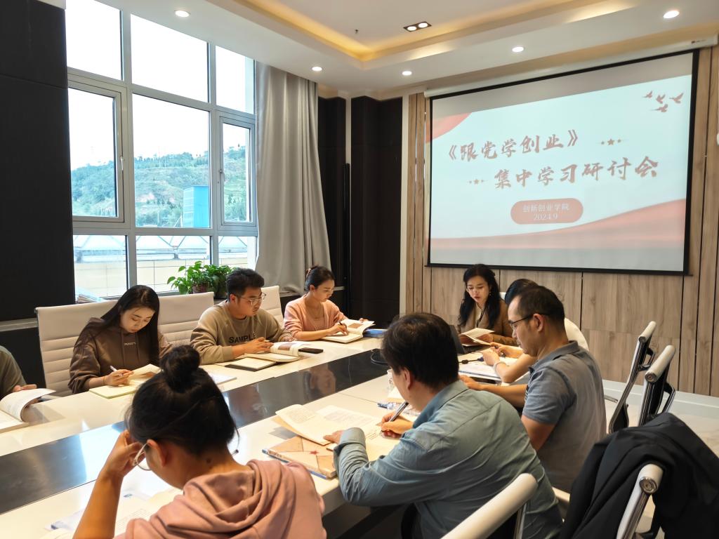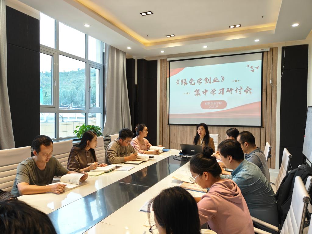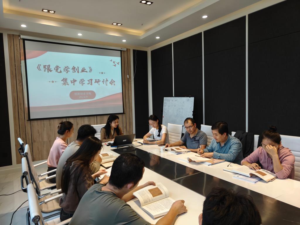 2024 年 9 月 13 日下午,创新创业学院《跟党学创业》集中学习研讨会在双创学院会议室举行。双创学院李少华院长与任课老师共同探讨在新时代背景下,如何从党的创业历程中汲取智慧和力量,为推动创新创业事业的蓬勃发展注入新的活力。党的创业历程是一部波澜壮阔的史诗,蕴含着丰富的智慧和宝贵的经验,对于当今的创业者来说,具有极大的启示和借鉴价值。
