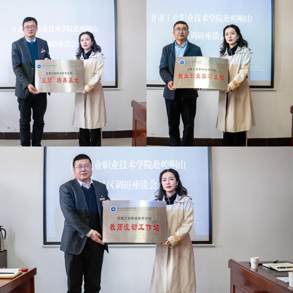 最后,就双方合作建设“双师型教师培养基地”、“甘肃工业职业技术学院教师流动工作站”、“丝路e创就业创业实践基地”进行了授牌签约。此次校企合作授牌签约仪式推动了我校实现资源共享、优势互补、成果转换的进程,促进了校企良性互动,产学研一体化建设的