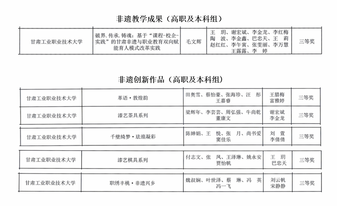 近日,甘肃省第三届“黄炎培杯”中华职业教育非遗创新大赛暨非遗职业教育成果展示活动圆满落幕。